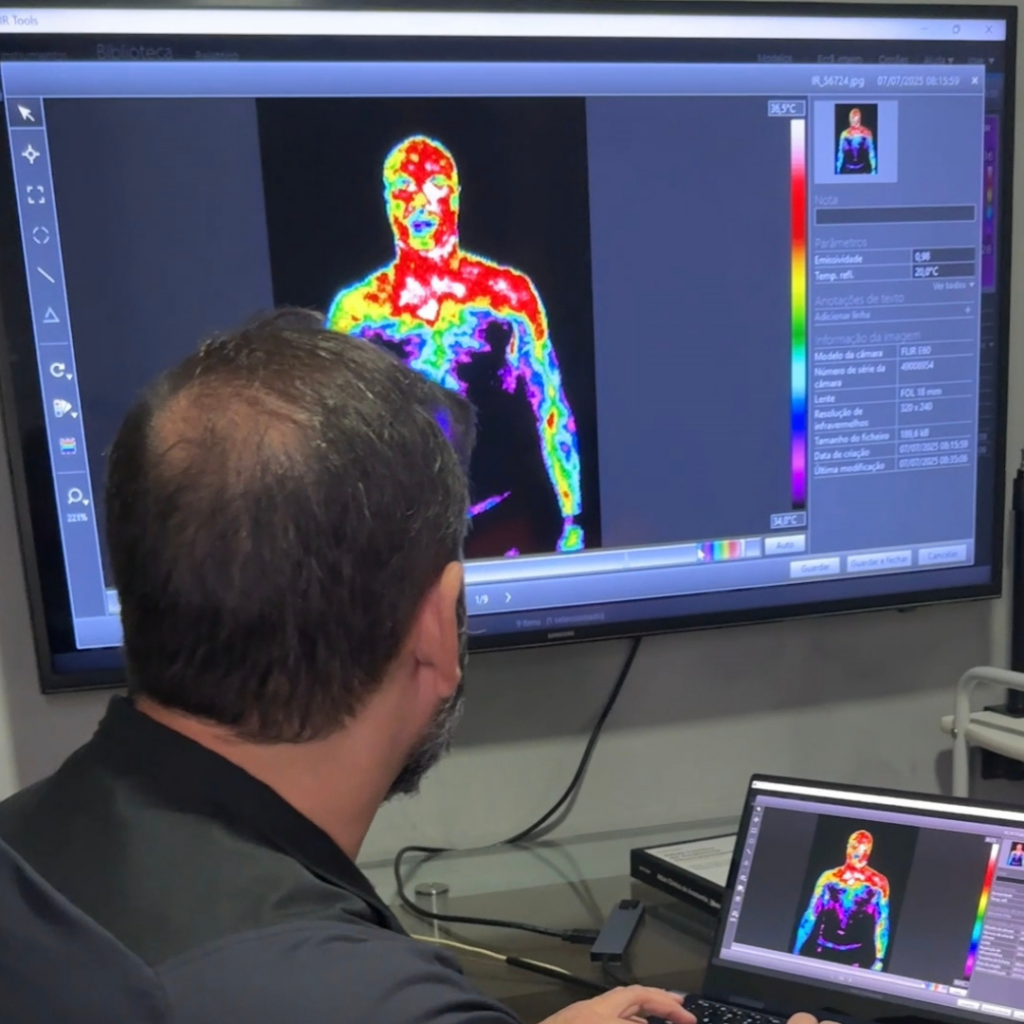 A consulta é realizada de forma minuciosa, podendo incluir até dois exames a Termografia e/ou a Baropodometria para identificar com precisão a origem da dor do paciente.